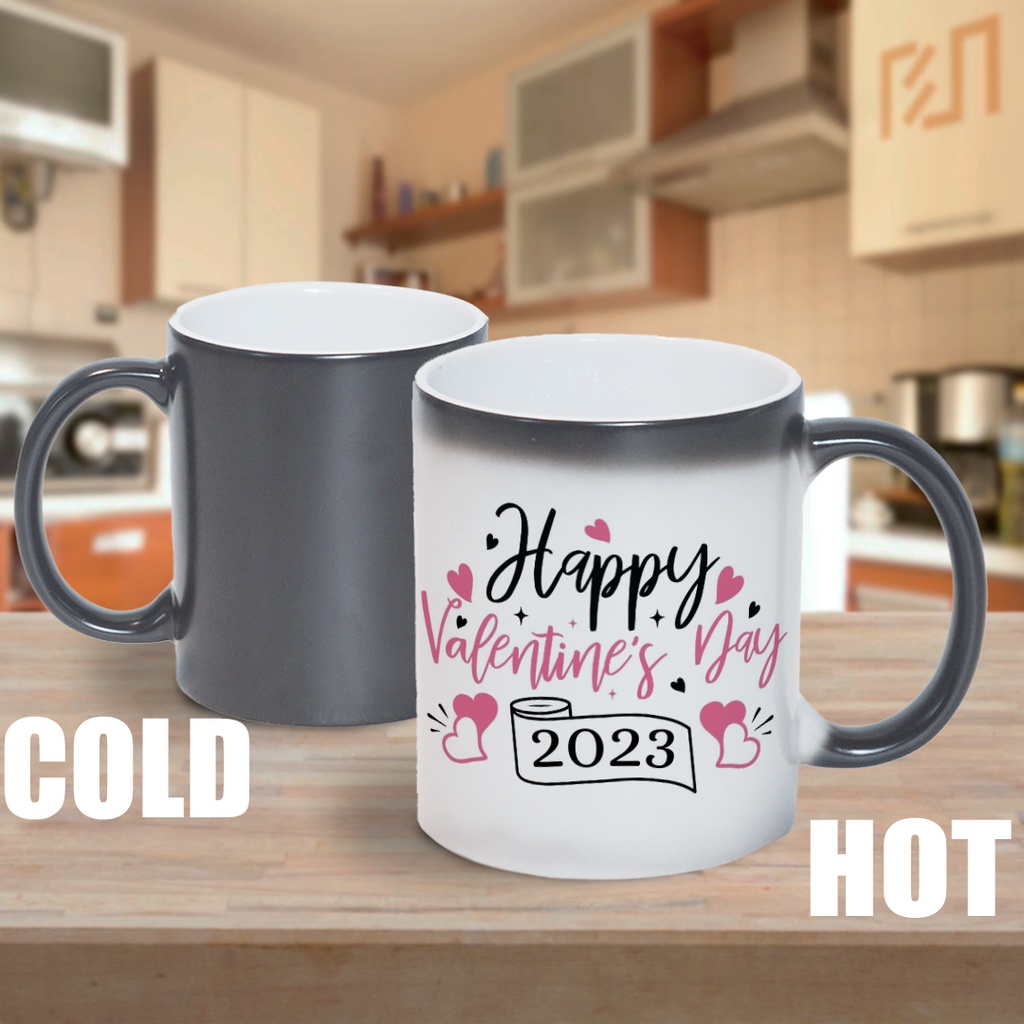 Mug custom dengan tulisan "Happy Valentine" adalah hadiah yang berguna dan memiliki nilai estetika pada momen hari valentine. Mug Bunglon Import ini memiliki warna dasar hitam dan biru tua, dan dapat berubah warna ketika diisi dengan air panas. Terbuat dari bahan porselain keramik berkualitas import premium, mug ini tahan terhadap panas dan dingin, dan dapat digunakan di dalam microwave. Dengan ukuran reguler 325ml, mug ini memiliki tinggi 9.5 cm dan diameter 8 cm, serta dijamin awet dan tahan lama.