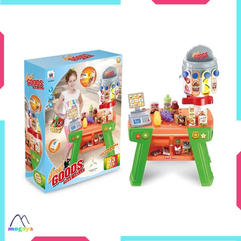 Ada juga supermarket playset dengan harga lebih murah yaitu Rp 300.000. Supermarket Stand In Fresh Goods Mini Market berukuran 44 x 26 x 71 cm, dimana 1 paket berisi rak barang, aneka belanjaan (sayuran, telur, jagung, susu, ice cream, aneka botol, dan bahan lainnya), trolley, mesin kasir, dan scanner barcode yang dijalankan menggunakan energi baterai AA 2 pcs.