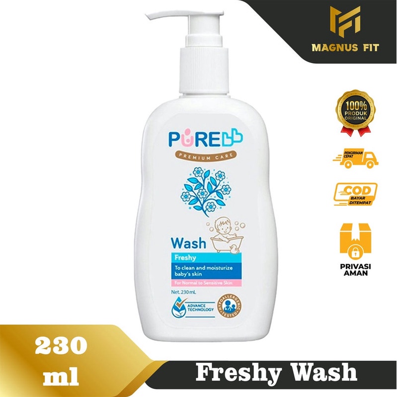 Sabun PUREBB Wash Freshy adalah produk 2 dalam 1 yang dapat digunakan sebagai sabun dan sampo cair untuk membersihkan badan, rambut, dan kulit kepala. Diformulasikan khusus dengan standar Europe Low Hazard 0-2, sabun ini bebas SLS (sodium lauryl sulfate) dan telah teruji klinis hypoallergenic. Sabun ini lembut di mata, cocok untuk kulit sensitif bayi dengan pH 5.5. Mengandung bahan-bahan alami seperti provitamin B5, aloe vera, dan ekstrak bunga matahari, sabun ini mampu menjaga kelembaban kulit, menghindari iritasi, dan memberikan perlindungan alami. PUREBB Wash Freshy adalah pilihan terbaik untuk menjaga kebersihan dan kesegaran si kecil tanpa mengandung bahan detergen yang dapat menyebabkan iritasi.