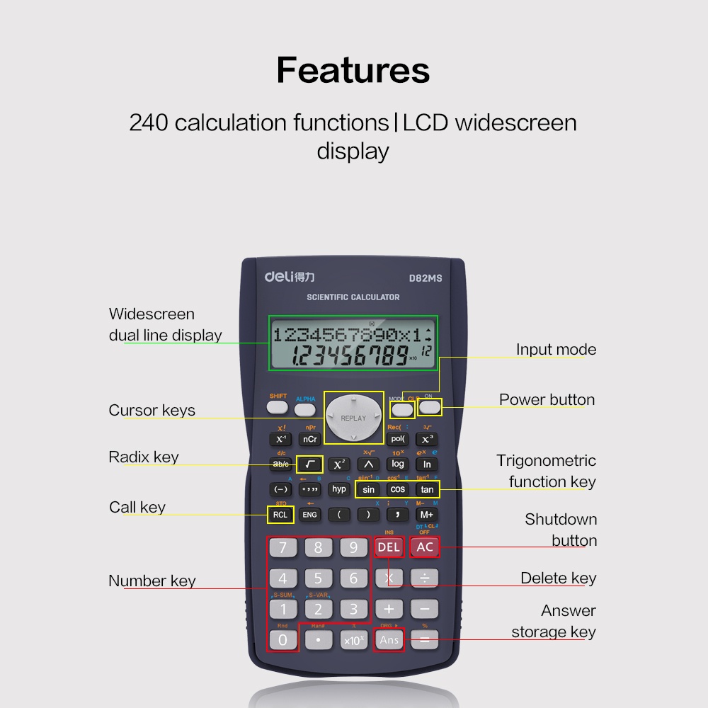 Rekomendasi kedua bagi yang sedang mencari kalkulator scientific adalah Deli ED82MS. Kalkulator satu ini tentunya bisa menjadi pilihan terbaik dengan harga super terjangkau. Namun, pastikan fungsi yang kamu butuhkan tersedia pada kalkulator.