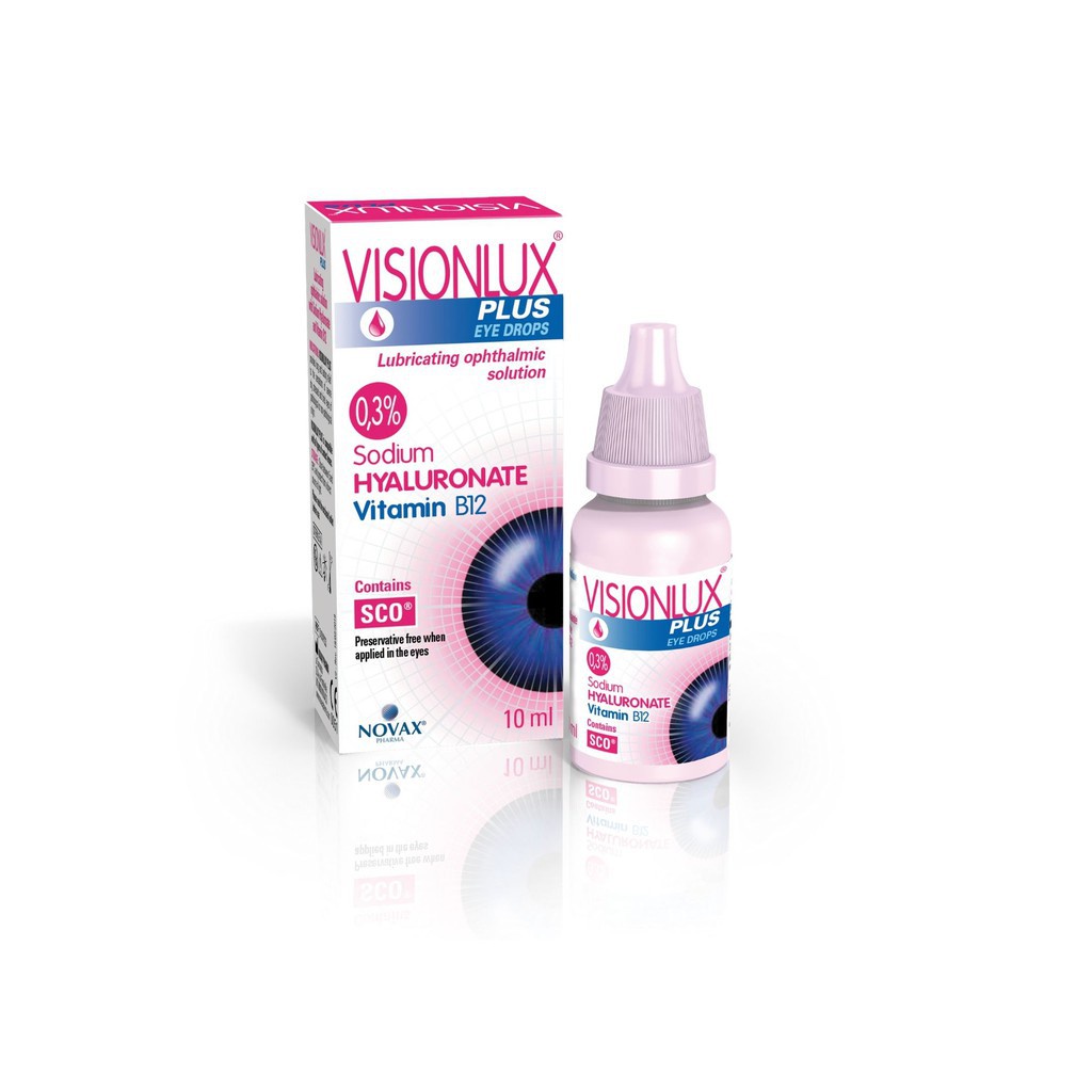 Visionlux Plus Eye Drops adalah tetes air mata buatan dengan kandungan antioksidan vitamin B12. Produk ini menyegarkan, merevitalisasi, dan melumasi mata dengan kombinasi Sodium hyaluronate 0,3% untuk melembabkan mata, P-Plus™ untuk efek yang lebih tahan lama, elektrolit untuk menjaga kondisi fisiologis mata, dan vitamin B12 antioksidan untuk melindungi permukaan mata dari radikal bebas. Visionlux Plus sangat cocok digunakan untuk meredakan mata lelah, gatal, dan perih akibat mata kering terkait penggunaan lensa kontak, paparan layar monitor yang lama, dan faktor lainnya. Produk ini juga melindungi sel-sel mata dari kerusakan radikal bebas dan dapat digunakan dengan semua jenis lensa kontak.