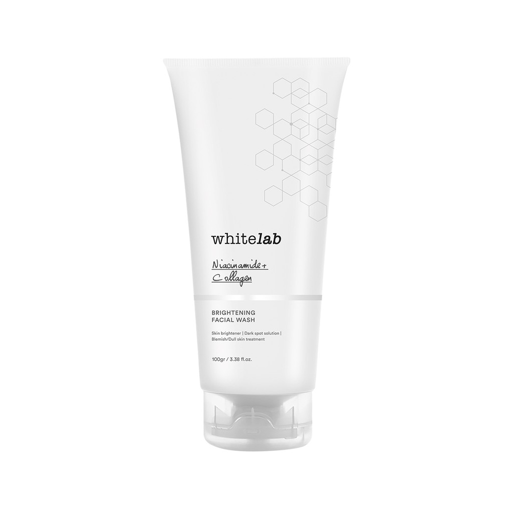 Whitelab Brightening Facial Wash mengandung powerful ingredients seperti Niacinamide yang berperan untuk mencerahkan kulit, melembabkan kulit, menyamarkan noda hitam, serta membantu mengatasi jerawat. Selain itu ada juga Collagen yang berperan penting untuk meningkatkan elastisitas kulit dan mencegah tanda penuaan kulit.