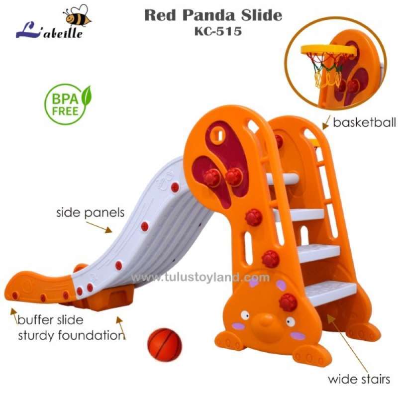Labeille Panda Slide KC 515 merupakan perosotan menggemaskan dengan tema Panda merah terakota yang didesain fun & playful untuk mengembangkan kemampuan koordinasi dan motorik anak. Terbuat dari plastik tebal yang aman, perosotan ini dilengkapi dengan panel pengaman pinggiran, papan landasan halus, dan pondasi kokoh. Dengan fitur anak tangga lebar anti slip dan pegangan yang nyaman, slide ini memberikan keamanan ekstra saat anak bermain. Dilengkapi juga dengan ring basket dan bola mini, serta cocok untuk melatih anak dalam memanjat, meluncur, dan bermain basket, baik di dalam maupun di luar ruangan. Dengan dimensi 165 x 65 x 82 cm, perosotan ini menawarkan waktu bermain yang menyenangkan bagi anak-anak.