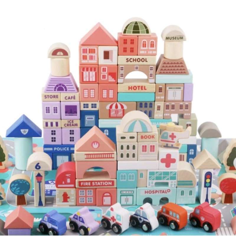 Magic City Block adalah mainan edukasi anak berupa balok kayu Building Block 115pcs MAGIC COLOR CITY yang dirancang untuk merangsang kreativitas dan perkembangan motorik halus anak-anak. Balok kayu berkualitas tinggi dengan bentuk yang jelas dan tekstur baik, serta menggunakan cat berbasis air yang ramah lingkungan dan aman bagi anak-anak. Selain itu, setiap batu bata telah dipoles 360° untuk memastikan keamanan dan kenyamanan saat bermain. Mainan ini tidak hanya mengajarkan konsep dasar bangunan dan transportasi, tetapi juga membantu dalam pembelajaran huruf, matematika, dan pemecahan teka-teki jigsaw. Dengan hadirnya kantong penyimpanan, anak-anak dapat belajar merapikan mainannya sendiri, mempromosikan kemandirian dan hubungan positif antara orangtua dan anak. Cocok untuk anak usia 3 tahun ke atas.
