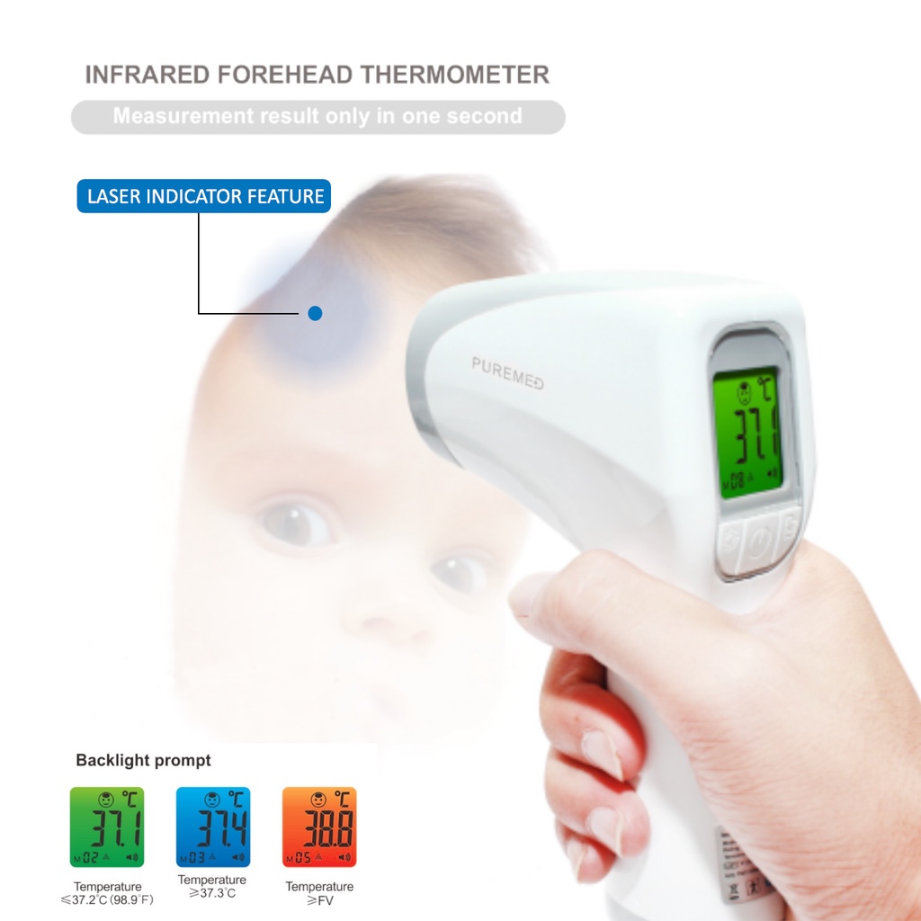 Fitur lainnya termasuk tiga warna lampu latar LED yang menunjukkan kondisi suhu (hijau untuk normal, kuning untuk demam ringan, merah untuk demam tinggi), serta kemampuan untuk menampilkan hasil pengukuran terakhir. Dengan kemampuan mengukur suhu tubuh dan suhu ruangan, Thermometer Scan Puremed merupakan pilihan yang andal dalam memonitor suhu untuk keperluan kesehatan.