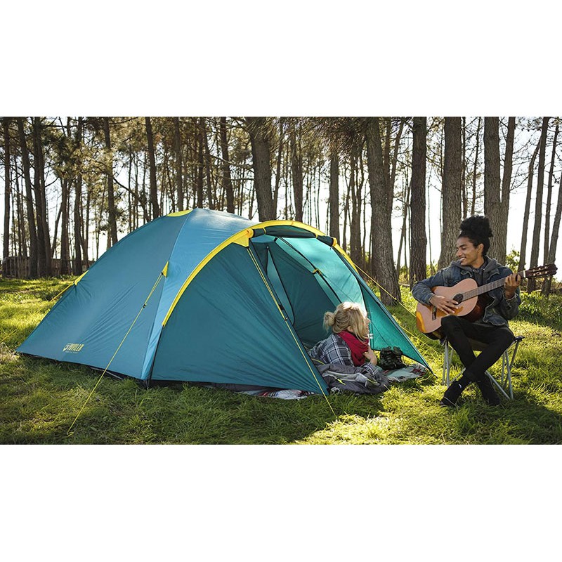 Tenda Coleman Sundome Bestway Pavillo Activeridge Tent 68091 adalah tenda camping berkualitas dengan desain yang stylish berwarna hijau tosca dan garis kuning yang menambah kecantikan. Tenda ini dilengkapi dengan jaring untuk menghalangi serangga dan ventilasi yang baik. Mudah dipasang dan praktis disimpan dan dibawa, tenda ini cocok untuk pemula. Dengan ukuran 210 cm x 240 cm x 130 cm dan kapasitas untuk 4 orang, tenda ini sangat cocok digunakan untuk petualangan, memancing, dan berkemah. Tenda ini tahan terhadap sinar matahari dan hujan deras, sehingga memberikan perlindungan yang baik saat berada di luar ruangan.