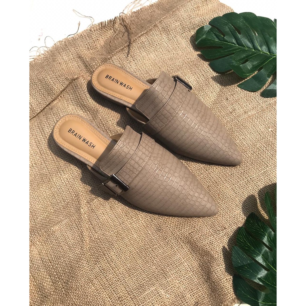 Klensia Bustong Wanita Flat Women Slip On Mules Mocca