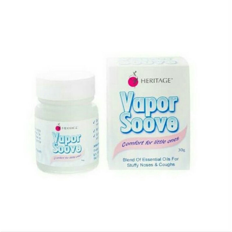 Produk ini berkhasiat untuk meredakan gejala hidung tersumbat, pilek, dan batuk. Petunjuk pemakaian yang disarankan adalah mengoleskan balsem secukupnya di bagian leher, dada, dan punggung anak-anak. Balsem juga dapat digunakan untuk pijatan seluruh tubuh pada bayi berusia di atas 6 bulan. Jika digunakan sebagai inhaler, tambahkan satu sendok teh Vapor Soove ke dalam baskom air hangat dan hirup uap yang melegakan dari balsem tersebut.