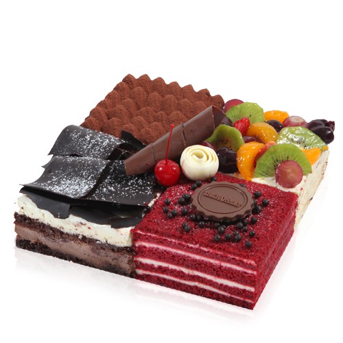 The Harvest Classic Mix Signature merupakan kue 4 in 1. Dengan perpaduan Tiramisu, Blackforest, Red Velvet, Vanilla Fruit Cheese cake. Pada bagian atas kue juga terdapat toping yang membuat tampilannya semakin menarik.