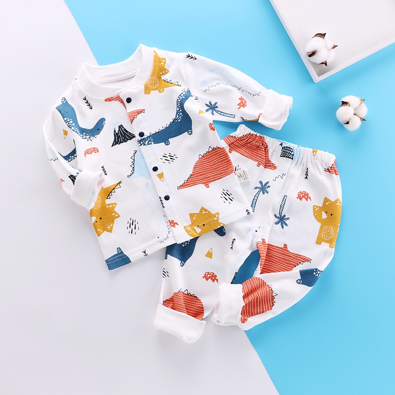 TinyHoney Baju bayi lakilaki katun lengan panjang cetak dinosaurus set