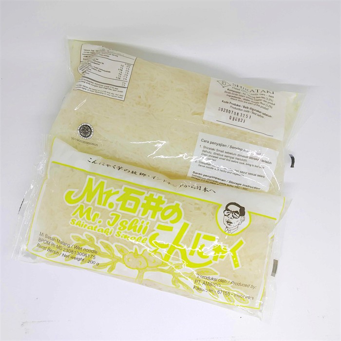 Bihun Shirataki dari Mr.Ishii adalah bihun dengan tekstur kenyal dan mulur yang terbuat dari tepung konnyaku yang berasal dari umbi iles-iles. Bihun ini sehat dan rendah karbohidrat, cocok untuk penderita diabetes, anak berkebutuhan khusus, dan mereka yang menjalani pola hidup sehat dan diet keto. Bihun ini populer sebagai pengganti nasi dalam program diet karena kandungan serat glucomannan yang tinggi, memberikan efek kenyang yang lebih lama, dan hampir tidak memiliki kalori.