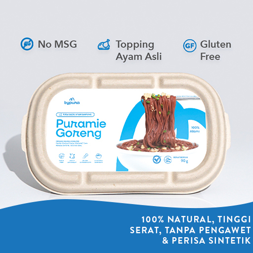 Puramie Goreng ByPura adalah mie instan dengan bumbu utama Pura Kaldu Ayam yang terbuat dari bahan-bahan alami dan berkualitas. Mie ini gluten free dan kaya serat, menggunakan mie dari beras merah organik, dan ditambahkan topping ayam asli.