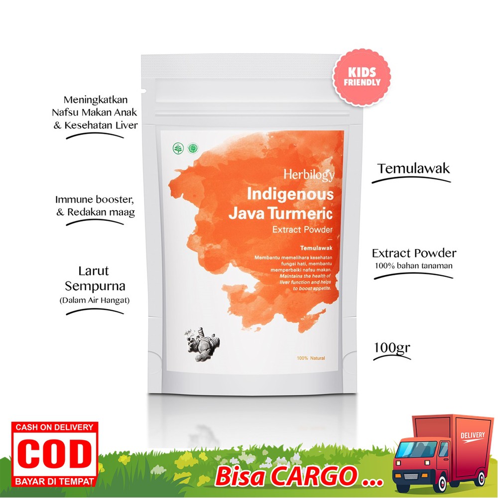 Herbilogy Java Turmeric (Temulawak) Extract Powder merupakan minuman serbuk dengan kandungan temulawak. Terbuat dari 100% temulawak kualitas premium murni tanpa tambahan gula, perasa, pengawet, pewarna dan bahan kimia lainnya.