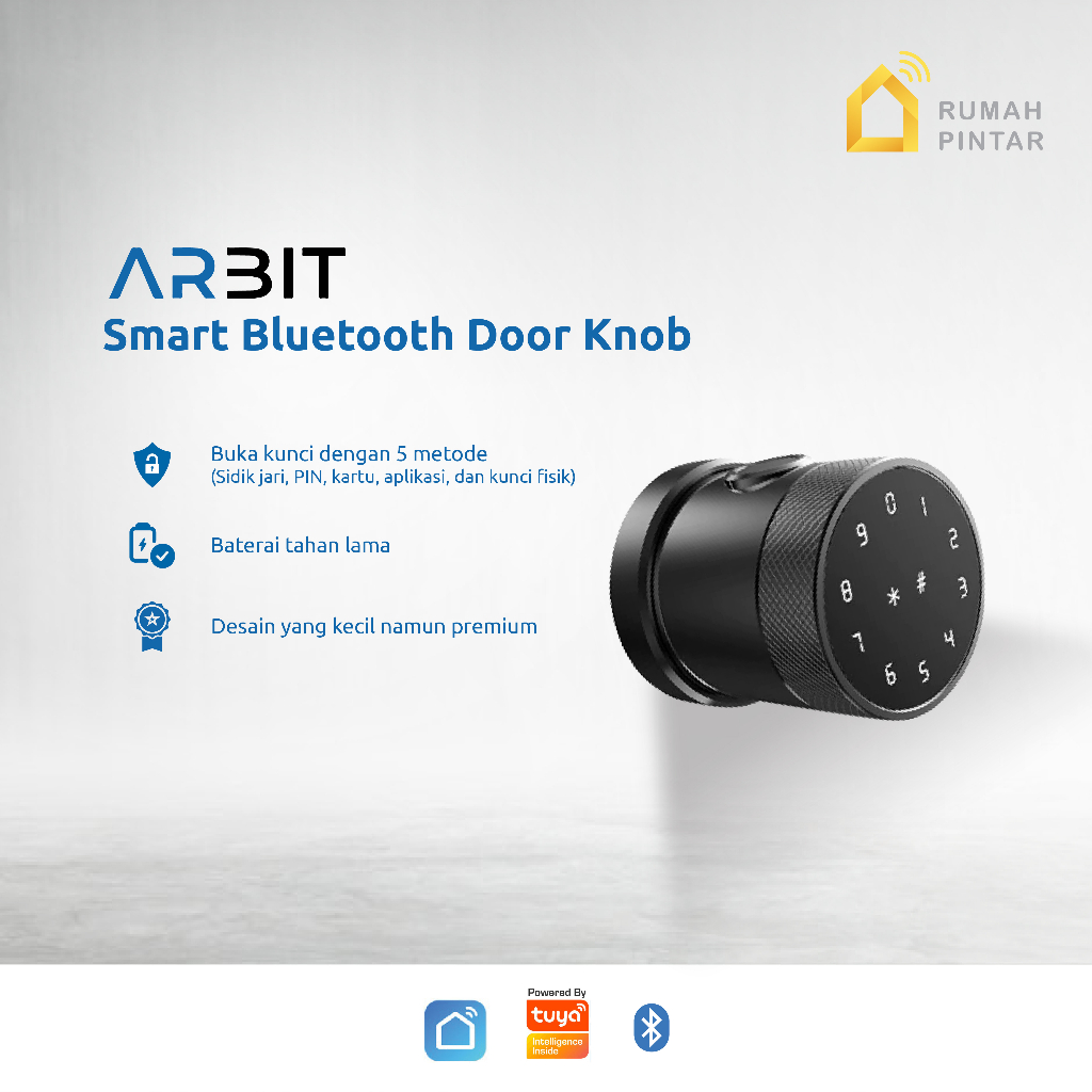 ARBIT Bluetooth Door Knob Lock Kenop adalah kunci pintar yang menawarkan berbagai fitur dan fungsi untuk keamanan rumah Anda. Didesain dengan bahan aluminium alloy, kunci pintar ini mendukung berbagai metode akses seperti fingerprint, RFID card, PIN, manual key, dan remote unlock melalui aplikasi. Memiliki kapasitas hingga 100 fingerprint, koneksi Bluetooth, dan fitur anti spy password. Baterai tahan lama dan alarm baterai rendah untuk keandalan. Produk ini juga memberikan kemudahan penggunaan dengan aplikasi Smart Life atau Tuya. Dengan garansi 1 tahun, ARBIT Bluetooth Door Knob Lock Kenop adalah solusi modern untuk menjaga keamanan pintu rumah Anda.
