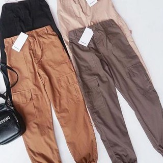 Lain lagi dengan desain celana jogger wanita dari Stradivarius. Celana jogger yang satu ini berbentuk celana cargo yang dilengkapi dengan banyak kantong. Sangat pas dikenakan untuk aktivitas outdoor dan membutuhkan Anda untuk banyak bergerak.