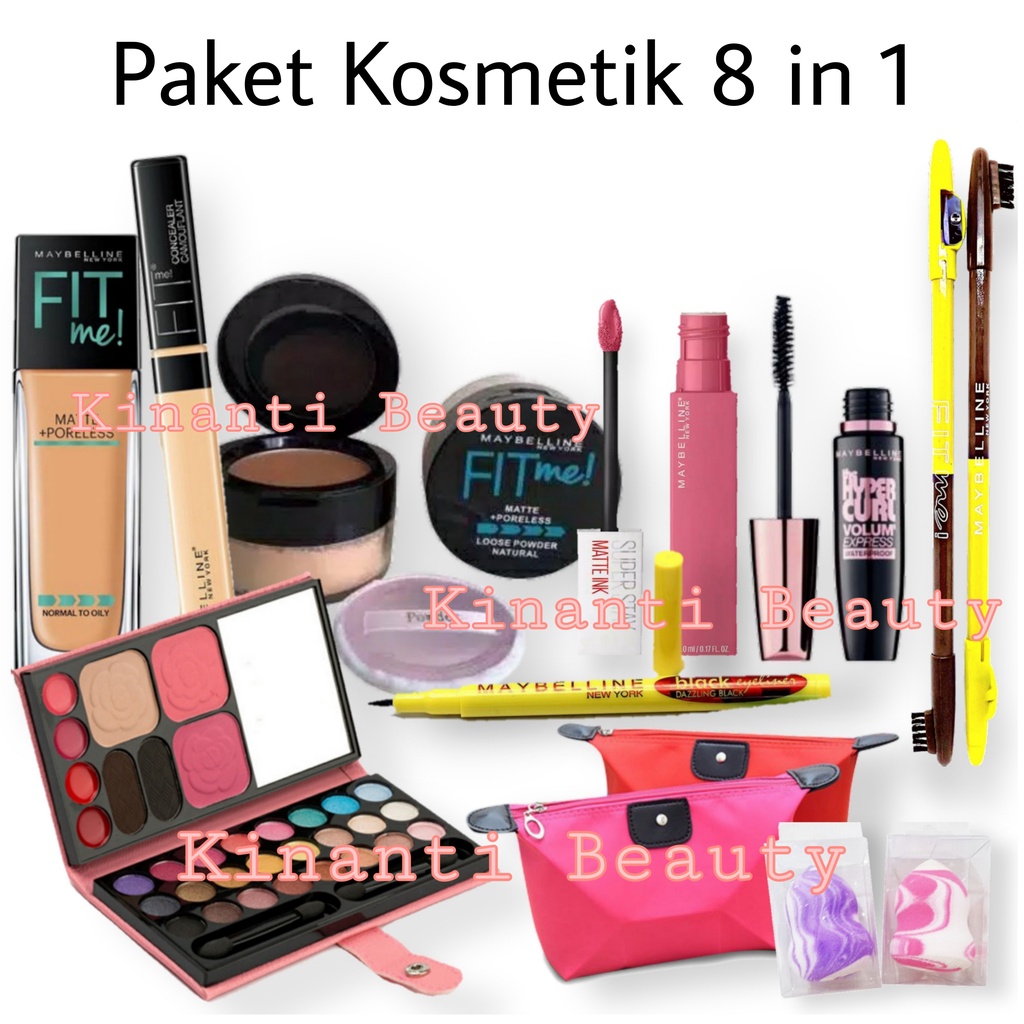 Paket Kosmetik Maybelline Lengkap ini terdiri dari bedak, maskara, foundation, eyeliner, lip cream, eyeshadow, dan pensil alis. Anda juga bisa mendapatkan hadiah tas gratis cosmetic pouch dan juga gratis beauty blender, lho.