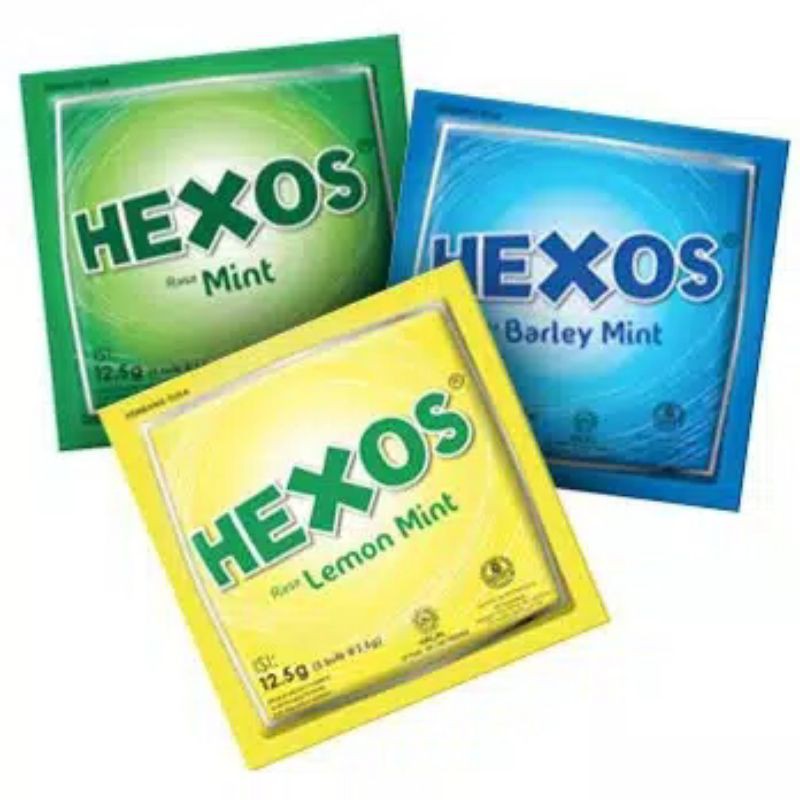 Hexos Permen Mint Pelega Tenggorokan adalah permen mint yang memberikan kesegaran dan melegakan tenggorokan sekaligus menyegarkan napas. Dikemas dalam sachet isi 5 butir yang praktis dibawa kemana saja. Tersedia dalam tiga varian rasa: Mint, Lemon Mint, dan Barley Mint. Permen ini berguna untuk menyegarkan dan melegakan tenggorokan serta menyegarkan napas. Komposisinya meliputi gula, glukosa, garam, mentol, dan pewarna makanan.