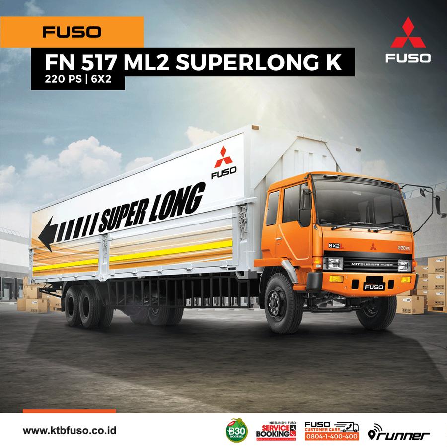 Fuso FN 517 ML2 Super Long K adalah truk yang menggabungkan kekuatan dan kapasitas. Ditenagai oleh mesin diesel turbo 4 langkah dengan 6 silinder, truk ini menghasilkan tenaga maksimal 220PS dan torsi maksimal 65 Kgm, cocok untuk mengatasi tugas berat. Dengan GVW mencapai 26 Ton dan panjang total mencapai 11,95 meter, truk ini menawarkan ruang yang luas untuk berbagai jenis karoseri, khususnya Box Wing.