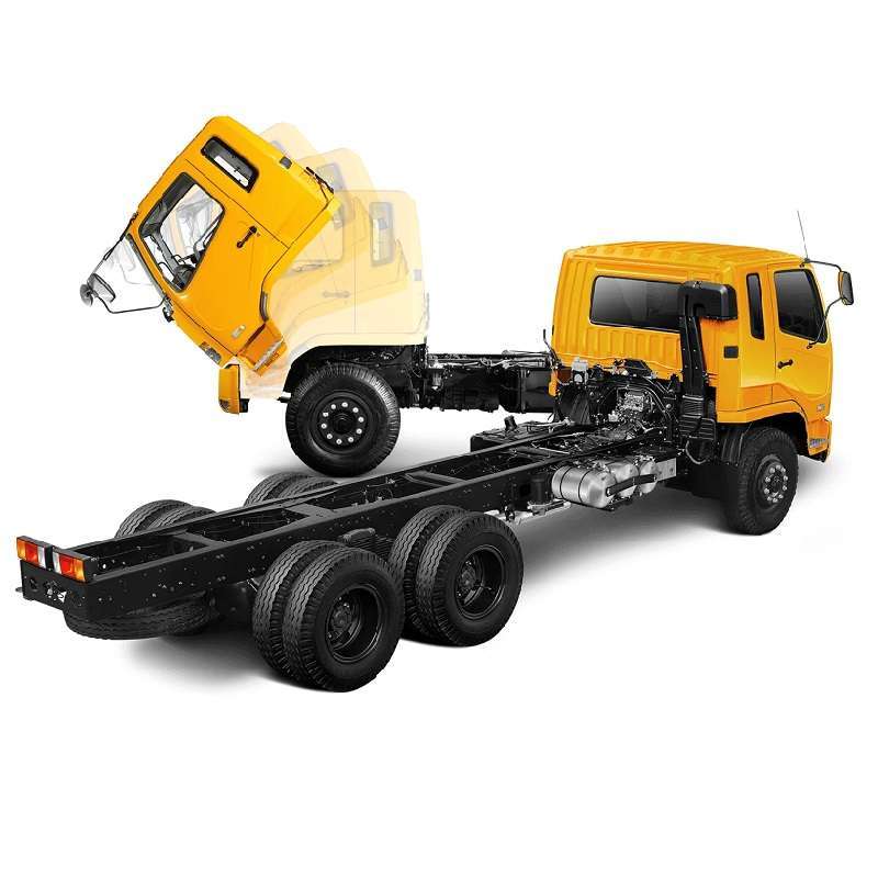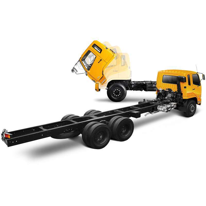 Fitur-fitur seperti air suspension seat, triple fuel filter, dan double water separator menjadikan truk ini ramah lingkungan dan nyaman bagi pengemudi, sementara pilihan karoseri yang beragam, termasuk box, tangki, flat bed, dan bak, menambah fleksibilitasnya sebagai kendaraan angkutan serbaguna.