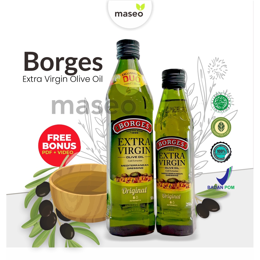 Borges Extra Virgin Olive Oil terbuat dari 100 persen minyak zaitun murni dari Spanyol. Produk minyak zaitun ini bisa digunakan sebagai bahan perawatan kecantikan, khususnya pada wajah. Dapatkan kulit wajah yang halus, lembut dan bebas jerawat hanya dengan rutin mengoleskan minyak zaitun di wajahmu.