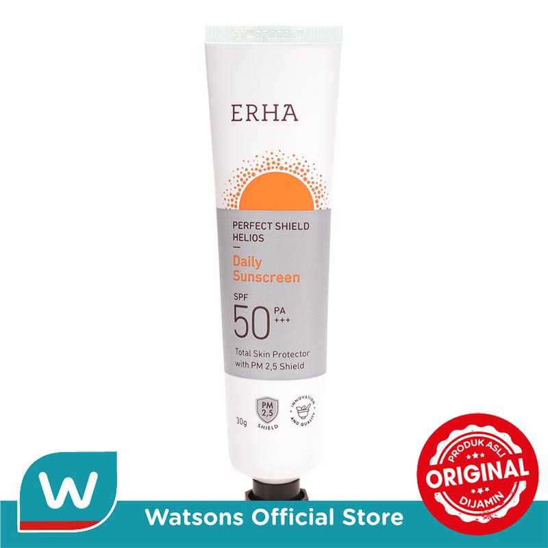 ERHA Perfect Shield Helios Daily adalah tabir surya yang dirancang khusus untuk melindungi kulit secara menyeluruh. Dengan formula Pollustop, produk ini memberikan perlindungan yang sempurna dari sinar UVA & UVB serta partikel polusi berukuran hingga 2.5 mikrometer (PM2.5) yang dapat menyebabkan kerusakan kulit dan penuaan dini. Kandungan Soybean Phytoplacenta Extract, Vitamin E, dan CoQ10 berperan sebagai antioksidan dan pelindung DNA kulit, sementara Brightening Peptide dan Water Lily Flower Extract membantu kulit terlihat cerah secara alami. Dengan tekstur ringan, ERHA Perfect Shield Helios Daily nyaman digunakan sehari-hari tanpa efek lengket. Untuk pemakaian yang optimal, aplikasikan pada seluruh kulit wajah setelah rutinitas perawatan kulit harian dan 15 menit sebelum keluar ruangan, serta ulangi pemakaian jika berkeringat di pagi atau siang hari.