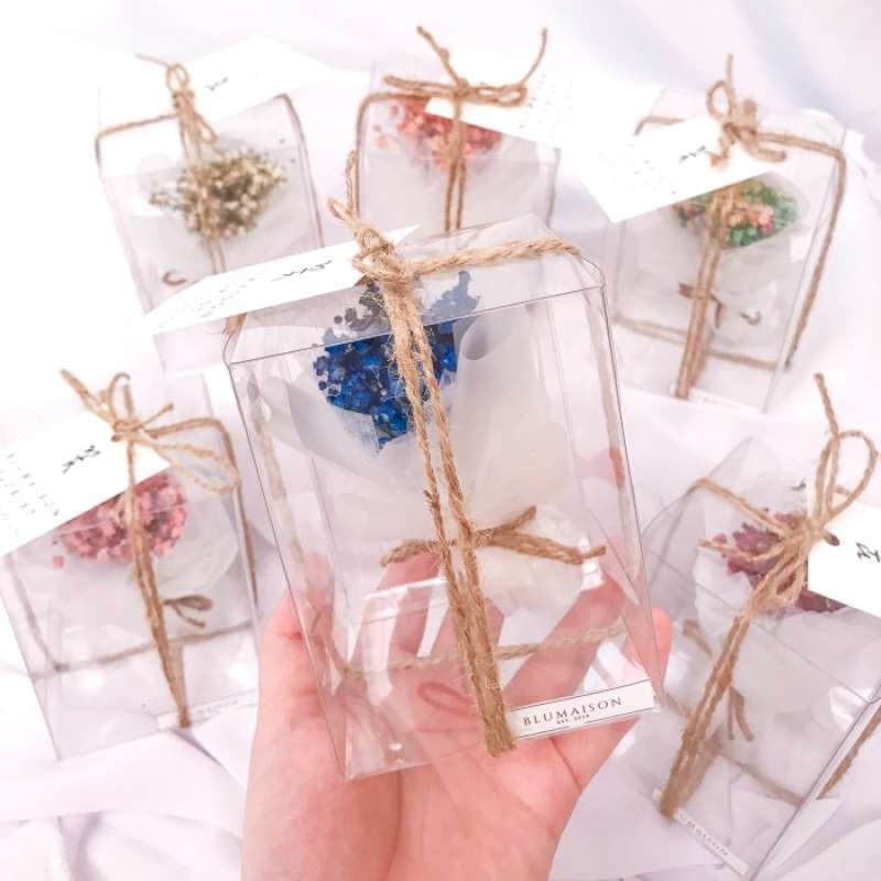 Setiap pembelian seri Immortelle ini dilengkapi dengan paper bag dan bubble wrap untuk pengiriman yang aman. Produk ini hadir dalam box mika tebal berkualitas tinggi dengan rangkaian bunga kering yang tidak berbau, dilengkapi dengan tag untuk menyampaikan pesan singkat.