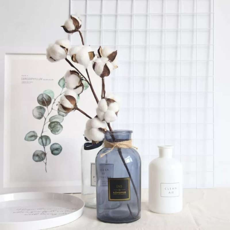 Bunga kapas kering (dried cotton) berkualitas premium, lembut, dan rapi. Dapat diaplikasikan dalam berbagai kreasi dekoratif seperti buket bunga, dekorasi, corsage, wreath, hingga properti foto. Satu tangkai memiliki 9-10 kelopak dengan diameter 6 cm dan tinggi sekitar 75 cm, memberikan sentuhan cantik dan rustic untuk dekorasi ruangan. Kapas ini memiliki bulatan cokelat tua dan putih yang keluar dari kelopaknya, sering dijual per batang dengan beberapa bulatan yang menggemaskan. Cocok ditempatkan dalam vas warna netral atau kaca bening untuk tampilan yang menawan.