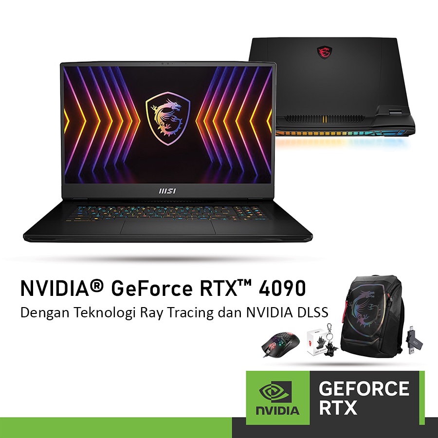 MSI Titan GT77 adalah laptop gaming dengan performa luar biasa. Dilengkapi dengan prosesor Intel Core i9 generasi ke-12 (Alder Lake) dengan kode HX (TDP 55W) dan kartu grafis GeForce RTX 3080 Ti (TGP 150W), laptop ini mampu menjalankan game dengan lancar. Selain itu, GT77 dilengkapi dengan keyboard gaming RGB dengan key switch CHERRY MX Ultra Low Profile dan speaker stereo dengan preset nahimic, yang meningkatkan pengalaman gaming yang menyenangkan. Laptop ini juga dilengkapi dengan berbagai fitur seperti webcam IR HD, sensor sidik jari, dan berbagai port konektivitas yang lengkap, serta hadiah eksklusif seperti Titan Gaming Backpack, MSI Dual Drive 128GB, MSI Lucky Figure Keychain_Black, dan MSI Gaming Mouse M99.