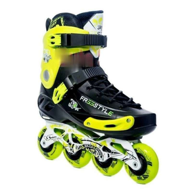 Sepatu Roda Dewasa Inline Skate Freestyle FRS One adalah produk berkualitas dengan desain Slalom Skate. Dibuat dengan shell tahan PP composite, lining berupa memory foam dan kain mesh yang dapat bernapas, serta chasis die casting stents 6061. Dilengkapi dengan roda PU elastis tinggi dan bearing ABEC-7, konfigurasi ukuran roda 76mm - 80mm - 80mm - 76mm. Tersedia dalam ukuran 38 hingga 43 dan berbagai pilihan warna seperti Hitam/Hijau-Kuning/Hijau.