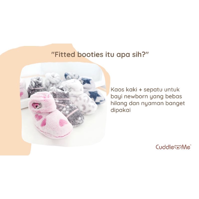 Buat penampilan bayi makin menggemaskan dengan memberikan paket sepatu berbagai model. Salah satunya ada Bundling Fitted Booties Cuddle Me. Sepatu model boot dengan bahan yang nyaman dikenakan oleh si kecil. Bahannya menggunakan material micro polar fleece lembut dengan pengencang velcro di bagian pergelangan kaki agar tidak mudah lepas dan hilang.
