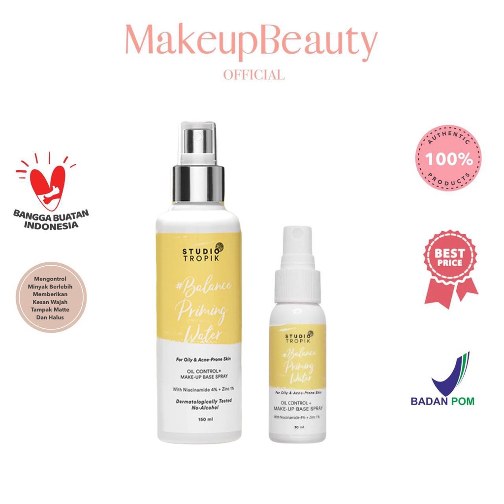 Studio Tropik Balance Priming Water adalah solusi sempurna bagi kamu yang tidak menyukai face primer dengan tekstur krim yang lengket. Priming water ini memberikan kesegaran pada kulit dan membuatnya siap menerima bedak atau foundation, sehingga make upmu akan lebih tahan lama dan menempel dengan sempurna. Brand skincare lokal Studio Tropik telah merilis priming water yang sangat populer di pasaran. Produk ini mengandung Niacinamide dan Zinc yang membantu mengontrol minyak berlebih, menyeimbangkan kulit berjerawat, dan memberikan nutrisi untuk kulit yang cerah.