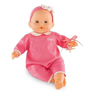 Bonekanya cantik dan menggemaskan dengan pakaian dan topi warna pink. Jahitannya rapi dan kuat sehingga aman dipeluk.