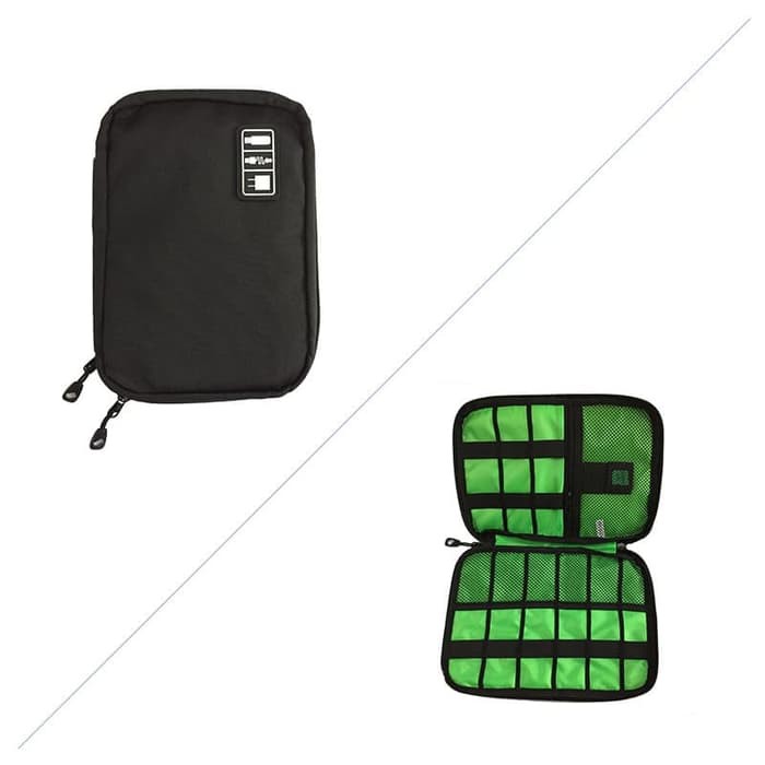 Organizer aksesoris elektronik yang cocok untuk semua jenis perangkat seperti iphone, ipod, kabel usb, kabel flash disk, kartu sd, charger, power bank, baterai eksternal, hard drive, earphone dan lain sebagainya. Gadget organizer multifungsi ini cocok untuk businessman, traveller atau digunakan di rumah.