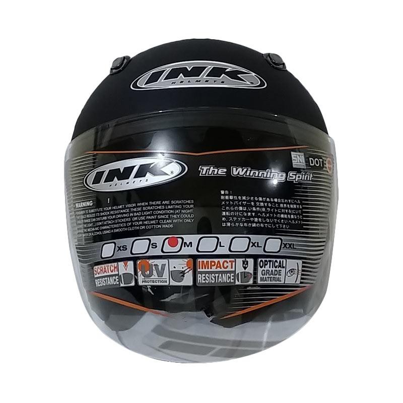 INK Metro 2 Solid Helm Half Face adalah helm open face trendy yang dilengkapi dengan double visor, sistem anti maling, dan alphabet system untuk personalisasi nama pemakai. Helm ini berstandar DOT dan SNI 1811-2007, dengan quick release safety buckle dan bagian dalam mudah dilepas dan dicuci. Selain memberikan kesan modis, helm ini juga berfungsi sebagai perlindungan saat berkendara. Double visor melindungi wajah dari terpaan angin dan materi keras yang bisa melukai wajah. Dengan menutup kaca helm saat berkendara dalam kecepatan tinggi, helm ini memberikan proteksi wajah dari angin kencang serta meningkatkan faktor aerodinamis dan keseimbangan.