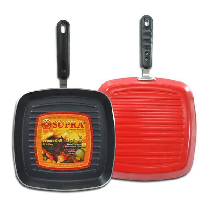 Anda bisa juga memakai Supra Square Grill untuk memasak di rumah. Produk ini memiliki ukuran 27 x 27 x 3 cm. Grill pan termurah ini terbuat dari bahan alumunium. Dengan dilapis teflon anti lengket, alat ini lebih mudah dibersihkan usai digunakan. Ada handel pada bagian rivet sehingga bisa kuat digunakan. Bagian dasar alat ini bergelombang sehingga bisa memberikan warna yang cantik pada makanan.