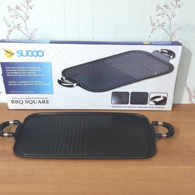 SUGGO Multi Grill Pan BBQ SQUARE adalah alat yang wajib Anda miliki di rumah. Produk yang satu ini serbaguna untuk semua jenis makanan olahan panggangan. Bagian bodinya terbuat dari bahan baja berlapis marble sehingga anti lengket dan mudah dibersihkan. Pemakaian grill pan termurah ini sangat praktis. Bagian pinggiran panggangan berfungsi untuk menampung sisa-sisa minyak sehingga makanan jadi lebih bebas kolesterol. Alat ini berukuran 50cm x 26cm dengan ketebalan 0.4cm.