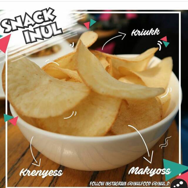 Snack Inul bisa kamu coba sebagai camilan ringan di kala senggang. Keripik ini bebas MSG sehingga aman dikonsumsi anak-anak. Uniknya selain ada rasa umum seperti balado dan barbekyu, ada juga rasa pecel dan cabe ijo yang wajib kamu coba.