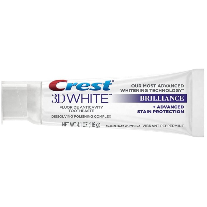 Produk pasta gigi ternama di dunia adalah Crest 3D White yang sudah dibuktikan banyak orang ampuh menjadikan gigi terlihat lebih terang dan putih. Kandungan formula unik mampu mengeluarkan busa sekaligus agen untuk memutihkan gigi.