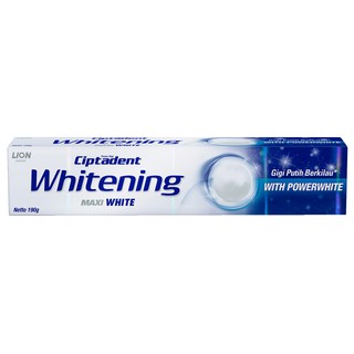 Ciptadent Maxi White menjadi pasta gigi terbaik dengan power White dan Active foam yang bermanfaat untuk membersihkan gigi dan membantu dalam menghilangkan warna putih alami gigi yang sudah memudar. Kandungan power white-nya sudah teruji klinis terbukti bisa membersihkan gigi dan gusi secara lebih bersih. Nafas menjadi lebih segar dengan aroma mint yang terkandung.