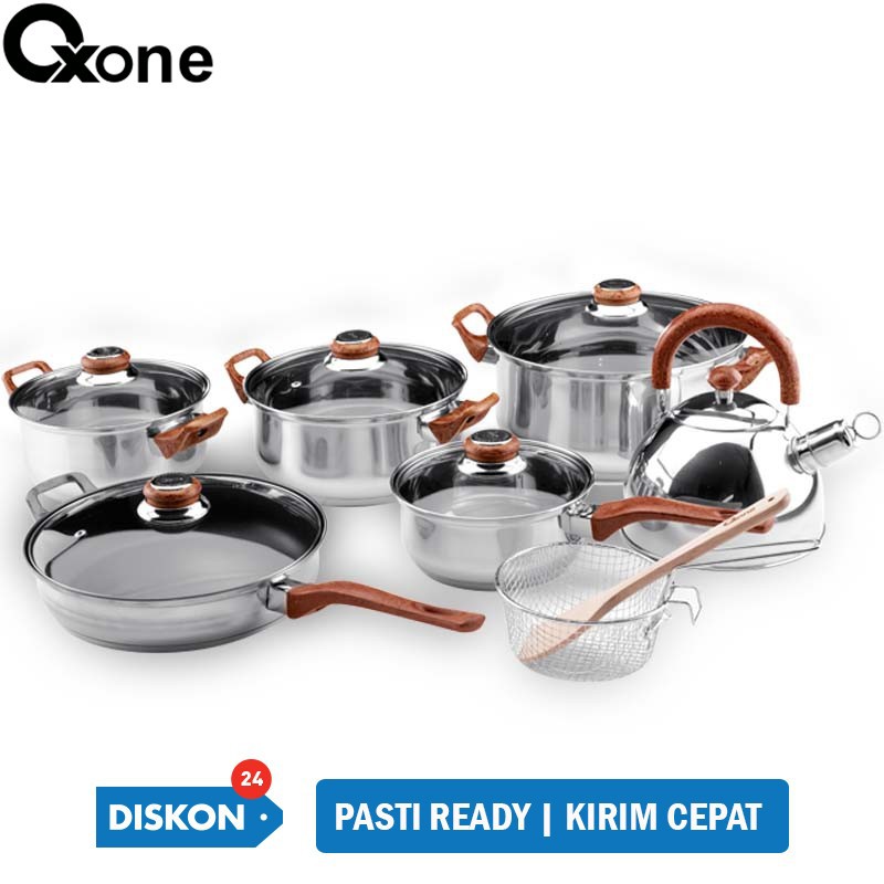 Pilihan pertama ada set panci dari Oxone Eco Cookware, yang berbahan dari stainless steel dan bagian bawahnya dilapisi aluminium. Dan gagang terbuat dari kayu sehingga tidak akan panas ketika diangkat.