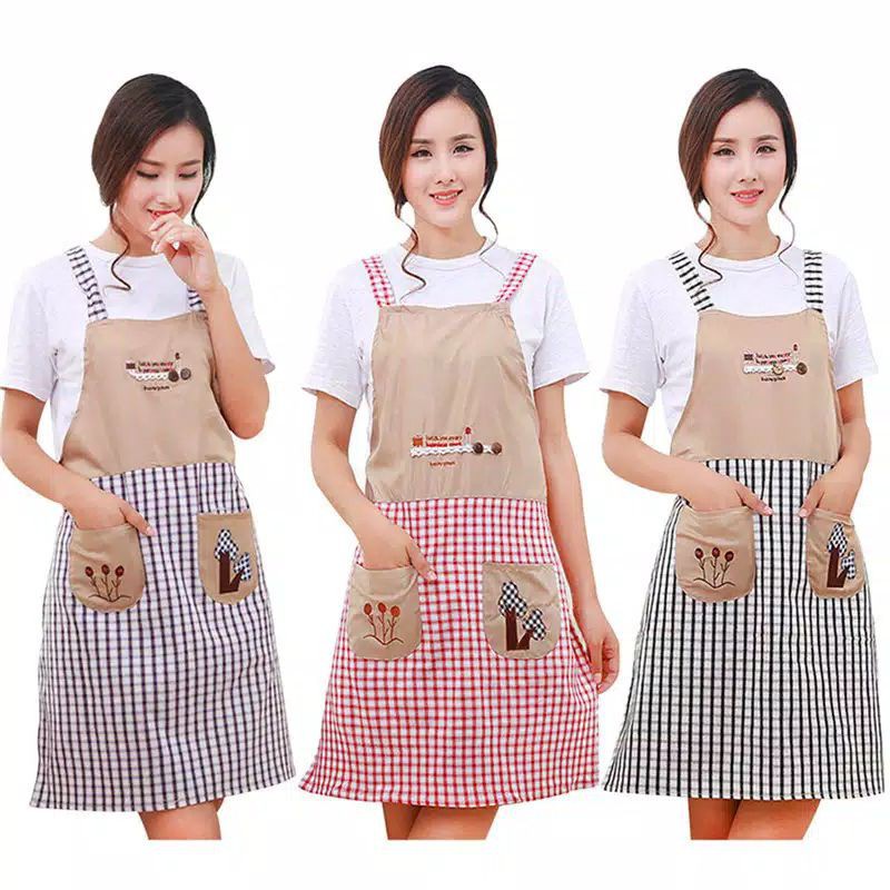 Cocok untuk ibu muda masa kini. Dilengkapi juga dengan dua saku yang ada di bagian depan. Apron dengan motif kotak ini tersedia dengan tiga warna yaitu merah, ungu, dan hitam.