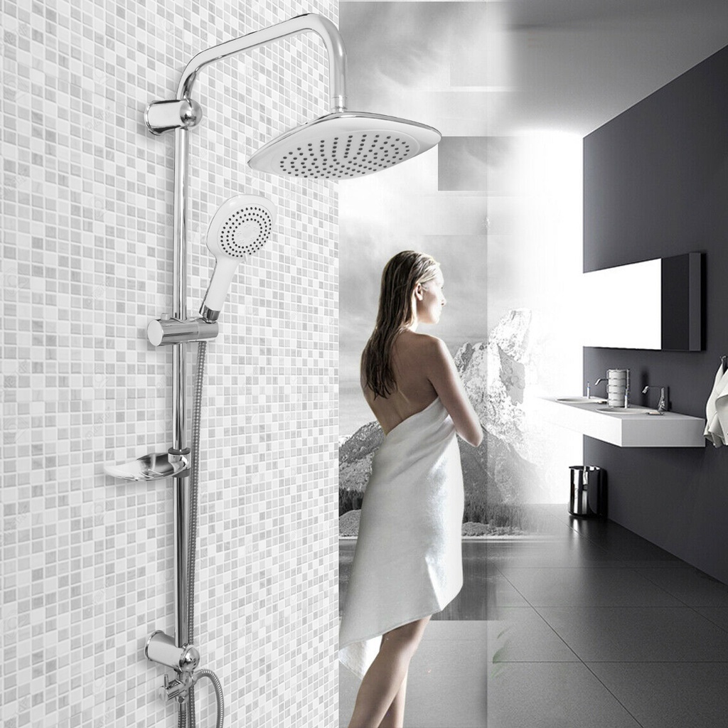 Set shower ini terdiri dari head shower, hand shower, tiang, stop kran, selang, dan tempat sabun. Head shower dan hand shower terbuat dari bahan ABS. Sedangkan tiangnya menggunakan bahan stainless dengan tinggi 100 cm.