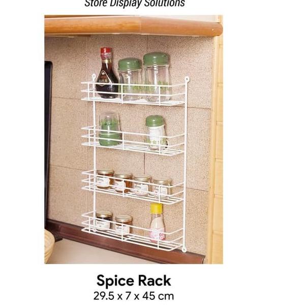 Ada lagi Rak Bumbu Dapur Spice Rack Modelline. Rak ini berukuran 29,5 cm x 7 cm x 45 cm, terbuat dari besi yang dilapisi plastik sehingga anti karat, mudah dibersihkan, higienis, dan juga tahan lama.