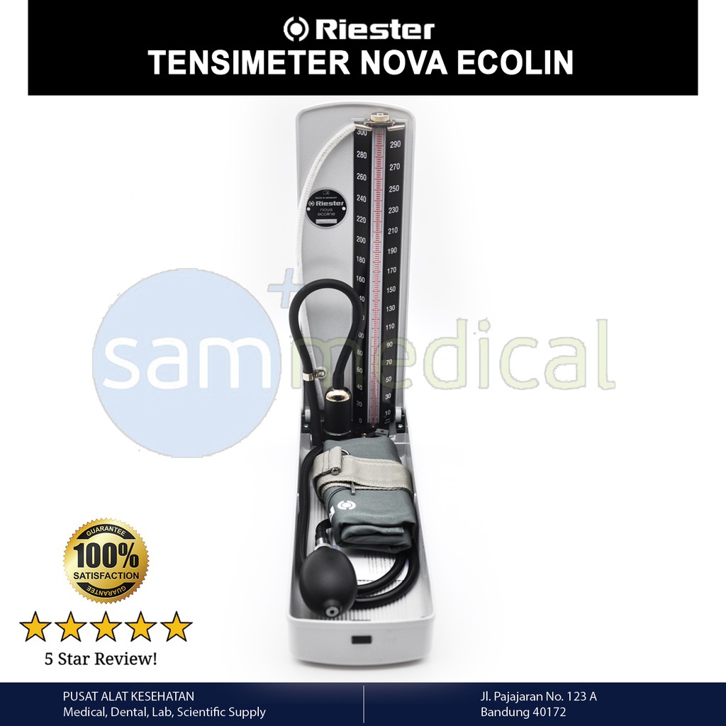 Satu lagi produk tensimeter yang bisa Anda dapatkan di marketplace adalah tensimeter manual Hg Riester tipe Nova Ecoline. Tensimeter ini adalah alat pengukur tekanan darah yang menggunakan air raksa. Memiliki daya ukur yang akurat, tensimeter ini memiliki jarum penunjuk hasil yang presisi dan sudah sesuai dengan standar internasional.Pastikan Anda tahu cara menggunakan tensimeter dengan benar untuk mendapatkan hasil yang akurat.