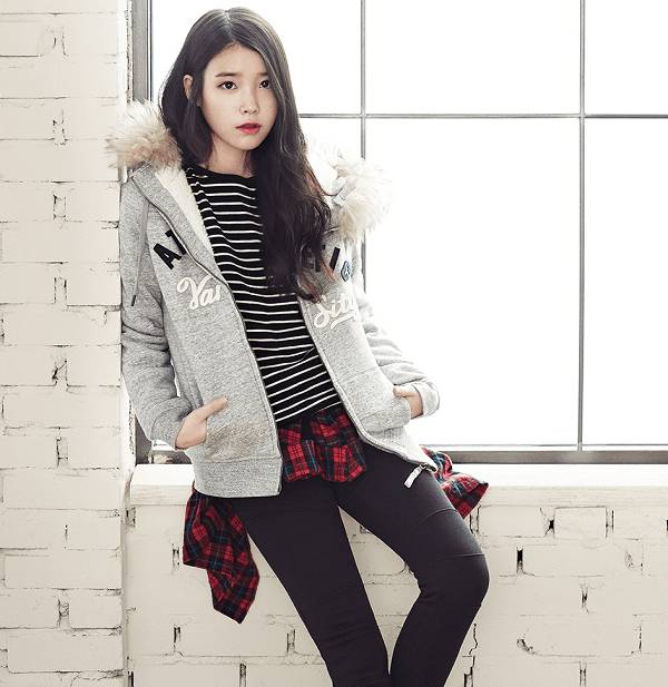 IU adalah penyanyi sekaligus aktris cantik dengan sejuta penggemar. Tampilannya dalam berbusana selalu menarik perhatian. Meski tubuhnya mungil, namun busana yang dikenakan selalu tampak manis dan pas.