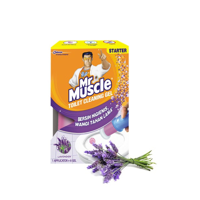 Mr. Muscle Toilet Cleaning Gel Lavender Reguler 36 ml merupakan produk pembersih kamar mandi dan kloset dengan wangi yang menyegarkan dalam kemasan botol. Produk ini ampuh untuk membunuh bakteri dan menghilangkan noda sabun pada tembok kamar mandi.