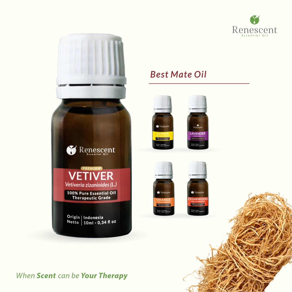 Pilihan minyak esensial lain bagi kamu yang ingin menjaga kesehatan dengan cara alami yaitu melalui manfaat dari essential oil adalah Renescent premium vetiver essential oil. Seperti namanya, produk satu ini berbahan dasar minyak murni dengan therapeutic grade.