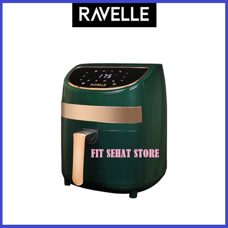 Ravelle Digital Air Fryer merupakan solusi praktis untuk menggoreng tanpa minyak dengan kesehatan yang terjaga. Dengan kapasitas 3.5L, air fryer ini memiliki 8 menu memasak yang sudah diatur dengan temperatur dan waktu yang tepat untuk kematangan yang sempurna, mulai dari kentang, steak, iga, ikan, udang, ayam, pizza, hingga kue. Desainnya yang mewah dengan warna Jade Green dan aksen emas memberikan kesan yang elegan. Fitur-fitur canggih seperti layar sentuh digital IMD, otomatis mati dan hidup ketika keranjang dikeluarkan dan dimasukkan kembali, serta teknologi sirkulasi panas 360' membuat proses memasak menjadi lebih mudah dan efisien.