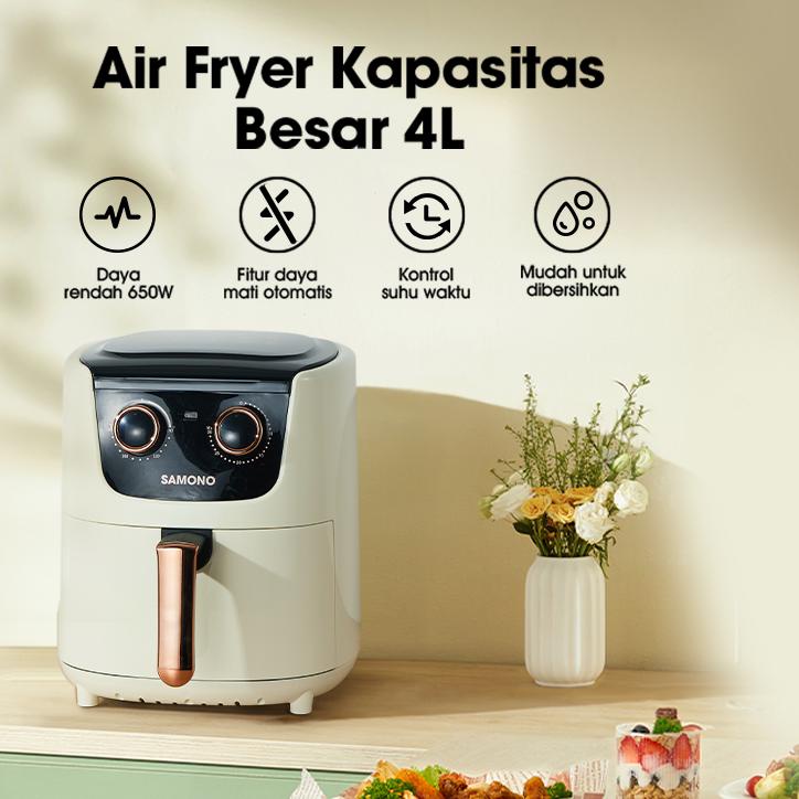 SAMONO Air Fryer 4 Liter 650 Low Watt Mesin Penggorengan Tanpa Minyak Touch Screen Magic Fryer Pot 7 Mode Masak SW-AFW04 White