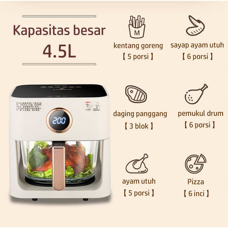 Air Fryer Low Watt 360° Kaca Visual 4.5L